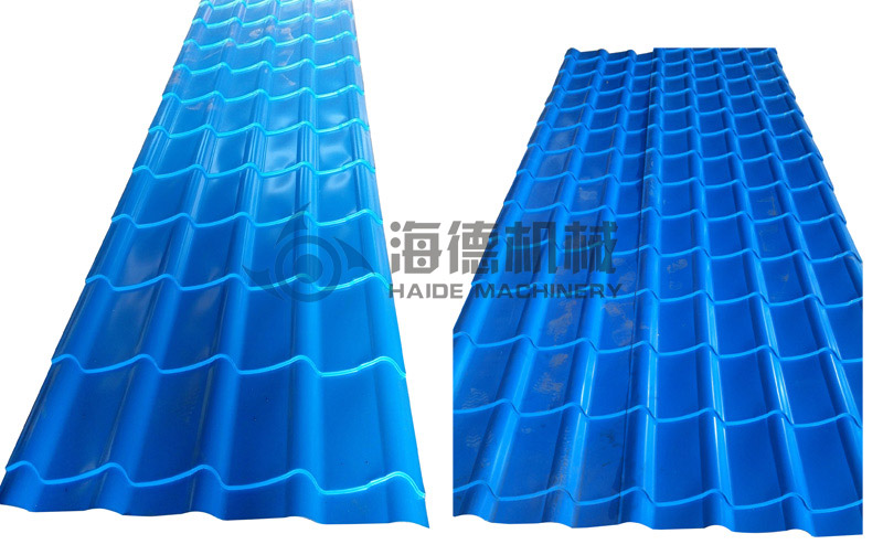 彩鋼琉璃瓦設(shè)備主要由放料機(jī)、進(jìn)料導(dǎo)入平臺、成型主機(jī)、沖模壓型裝置、成型剪切裝置、液壓站、電腦控制系統(tǒng)、成品托架等幾部分組成。