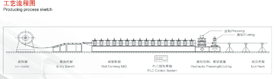 彩鋼琉璃瓦設備主要由放料機、進料導入平臺、成型主機、沖模壓型裝置、成型剪切裝置、液壓站、電腦控制系統(tǒng)、成品托架等幾部分組成。