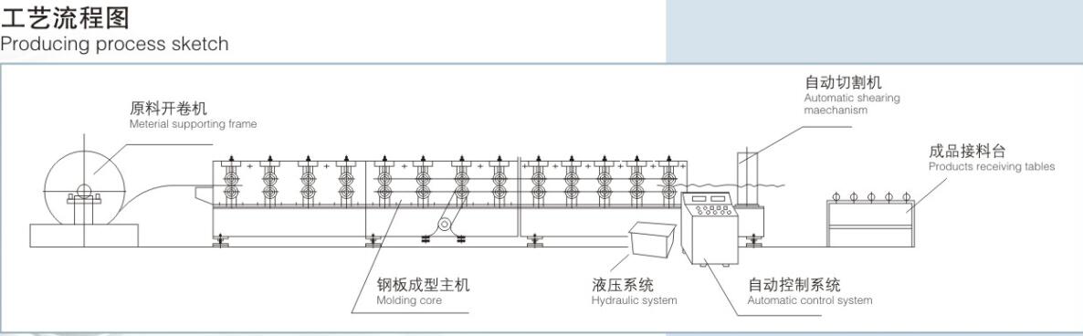 該機(jī)生產(chǎn)的樓承鋼板,用于樓層樓面板,具有波峰高、強(qiáng)度大等特點(diǎn),而且生產(chǎn)自動化程度高,成本低廉。