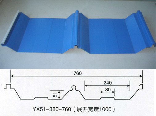 經(jīng)該機輥軋成型的壓型板屬咬口屋面板,具有波峰高、強度大、無螺釘鎖邊咬口安裝,搭接安裝安全可靠,防水抗臺防暴性能強等特點,而且生產(chǎn)自動化程度高,成本低廉,經(jīng)久耐用,重量輕,拼裝組合自由方便。