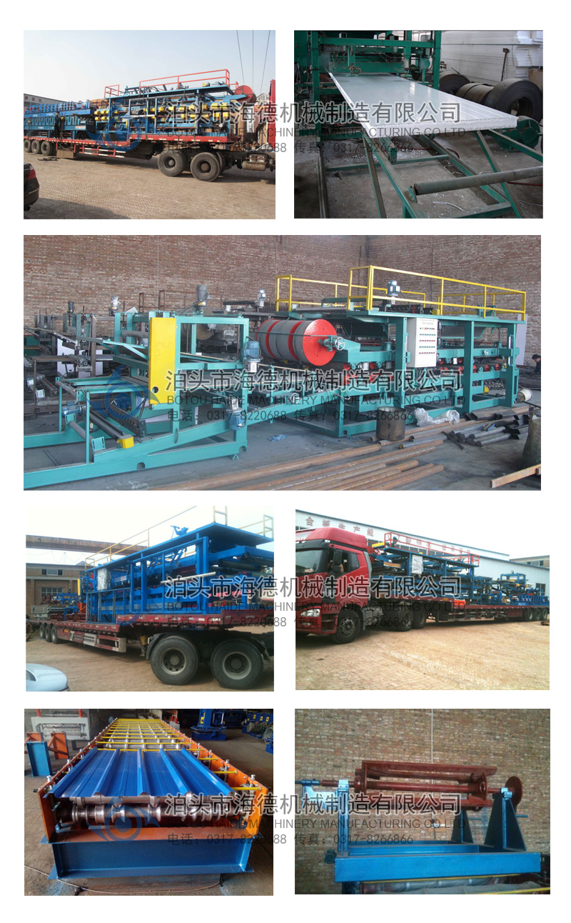 全套流水線放料機(jī)構(gòu)、壓型機(jī)構(gòu)(壓筋、涂膠、加溫、復(fù)合、卷邊、開槽、整邊、氣動、自動切割)組成,是生產(chǎn)工業(yè)廠房、倉庫等屋面板和墻板不可缺少的設(shè)備。